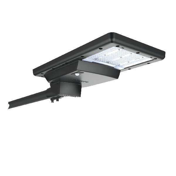 Integrated solar street light with lithium ferro phosphate battery, solar panel and charger built into the luminaire. Pressure die cast aluminium for sturdiness and long life. Specially designed pole mounting bracket allows different tilt angles, lateral and pole top mounting. Configuration and health monitoring via BLE mobile application. Available in offgrid and hybrid solar versions.